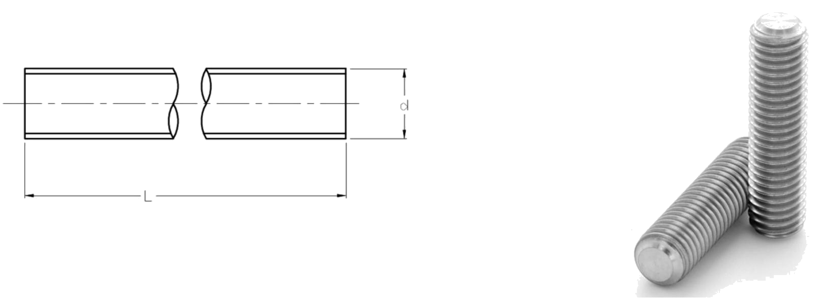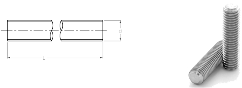 DIN975 แท่งเกลียวสแตนเลสขนาดด้านล่าง: